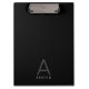 Minimalistic elegant black and grey personalised clipboard with a simple and understated masculine modern monogram.