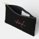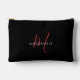 Elegant Modern Black Red Script Monogram Accessory Pouch