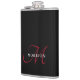 The flask itself is fine. It’s a cheap flask, obviously bought in bulk, however am prepared to overlook that. Given that it is a personalized item, I would have liked to have seen gift boxing instead of the generic packaging. Terrible printing, and/or quality. It’s a cheap, tacky vinyl. It is not cut straight and is also applied in a way that it is overhanging the bottom, causing the glue to catch on items and it will eventually roll and tear, damaging the wrap.