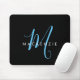 Elegant Modern Black Sky Blue Script Monogram Mouse Pad