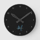 Elegant Modern Black Sky Blue Script Monogram Round Clock