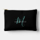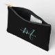 Elegant Modern Black Teal Script Monogram Accessory Pouch