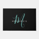Elegant Modern Black Teal Script Monogram Doormat. An elegant gold script monogram combined with a clean white san-serif font makes for a contemporary look.