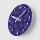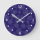 Elegant modern floral Round Clock with classic blue background and white illustrated abstract leaves.