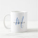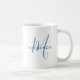 Elegant Modern Blue Script Monogram Coffee Mug. An elegant blue script monogram combined with a clean black san-serif font makes for a contemporary look.