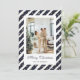 Modern blue and white photo Christmas card featuring a blue and white photo frame with stars and an elegant script font. Easily personalise this festive photo Christmas card with your photo and family name.