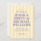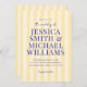 Create your own personalised wedding invitations featuring modern typography in blue colour on yellow striped pattern background.