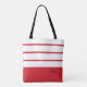 Elegant Modern Bold Stripes Monogram Initials Red Tote Bag