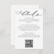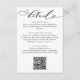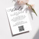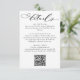 This elegant wedding details card is designed to provide guests with essential information in a beautifully stylish way. Featuring modern handwritten calligraphy script paired with a timeless serif font, the layout offers a refined, minimalist look that perfectly complements romantic, classic, or contemporary wedding themes. The card includes space for reception details, accommodation information, online RSVP details, or any other info, and a QR code for easy online access to RSVP and your wedding website. Ideal for coordinating with a full suite of matching wedding stationery, this details insert brings both sophistication and convenience to your invitation ensemble while ensuring your guests feel informed and warmly welcomed.