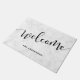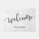 Minimal and modern personalized doormat which features white marble and elegant handwritten script lettering. A perfect gift for new homeowners or newlyweds.