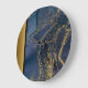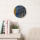 Update your wall clock to the latest design trend... marble! Interior designers are incorporating luxury marble into every aspect of home decor. Now your wall clock can be as chic and design-savvy as your home! Marble is known for it's classic, timeless, and elegant appeal. Our collection of faux marble patterns offer many colour options including, grey, black, tan, brown, pink, gold, blue and green. The marble patterns range from soft and warm monochromatic neutrals, to a deep dark moody look, to bold and bright abstract designs. This classy design features various shades of blue (faux) marble with gorgeous gold veining. A black and gold left side border completes the modern design. Clock available in various size and style options. Don't see your favourite colour? No worries, special design requests accepted.