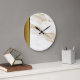 Update your wall clock to the latest design trend... marble! Interior designers are incorporating luxury marble into every aspect of home decor. Now your wall clock can be as chic and design-savvy as your home! Marble is known for it's classic, timeless, and elegant appeal. Our collection of faux marble patterns offer many colour options including, grey, black, tan, brown, pink, gold, blue and green. The marble patterns range from soft and warm monochromatic neutrals, to a deep dark moody look, to bold and bright abstract designs. This classy design features white and gold (faux) marble. A black and gold left side border completes the modern design. Clock available in various size and style options. Don't see your favourite colour? No worries, special design requests accepted.