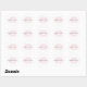 Pretty design featuring pastel pink lips, white background and elegant calligraphy font.