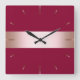 Elegant modern chick rose gold & burgundy strip square wall clock