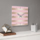 Elegant modern chick rose gold pink striped square wall clock