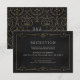 Vintage elegance ornate swirl frame design in gold colour on grunge black background. Damask pattern with monogram design on the back, modern, elegant and classy, perfect for vintage wedding, art deco wedding all year round. Editable background colour to match your wedding theme colours. Customise your own reception card for your wedding invitation set.