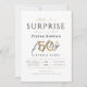 Modern classy surprise birthday invitation features stylish script and typography with your party details in sophisticated gold, black and white, simple and elegant, Great for 50th birthday party or any other age,