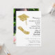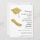 This stylish white, black and gold photo graduation invitation for the class of 2025 graduate is decorated with a grad's hat and diploma illustrations. Upload the graduate's photo via template and personalise the invite with a name, year, school, date, place, and RSVP data. Photo is on the backside.