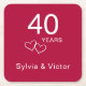 Instantly create a beautiful vibrant anniversary party table with these ruby red personalised coasters. Add the couple's names for an elegant 40th wedding anniversary party table. My original designed intertwined hearts accent the modern simple white script "40 Years". Personalise this stylish ruby red coaster with the couple's names in modern typography. You can also change the number for a 25th anniversary, or 10th wedding anniversary, 50th or 60th. This would create a lovely wedding anniversary party table paired with my matching keepsake commemorative glasses.