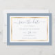 Elegant personalised dusty blue and gold wedding save the date cards. Easily personalise online. Matching items available to complement these minimalist, yet elegant dusty blue and gold wedding save the date cards. For custom requests, please send us a message via Zazzle chat.