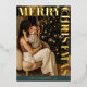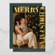 Elegant Modern Family Photo Green Merry Christmas Foil Holiday Card