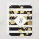 Elegant modern, black and white stripes with faux gold paint splatters, Birthday party invitations. Very classic and sophisticated design for the classy Birthday lady. Personalise with your own message and monogram on the back. All photo print design