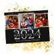 Elegant Modern Firework Happy New Year Three Photo Holiday Card