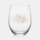 Elegant Modern floral Bird Overlay Flowers wedding Stemless Wine Glass