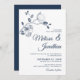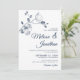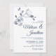 Create the perfect Wedding suite with this classy and simple wedding invitation featuring a beautiful and delicate Prussian blue orchids line drawing design at the top, over an elegant minimalist plain white background. Easily edit the template fields to add the bride and groom names in a classy dark blue font, and your date and location details in a modern all caps font.