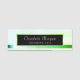 This badge looks professional and it's in keeping with my branding. The magnetic attachment is strong and stays in place all day. The quality of the materials and the colors were exactly as pictured. I couldn't be happier! The printing is clear and easy to read