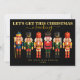Spread laughter and cheer this holiday season with our Elegant Modern Funny Black Nutcracker Christmas Holiday Card. Featuring a row of 6 vibrant and quirky Nutcrackers, this card stands out with its playful design against a bright green background. The fun phrase "Let's get this Christmas Cracking" takes centre stage, with "Let's get this Christmas" in bold beige text and "Cracking" elegantly scripted for a sophisticated touch.