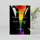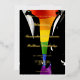 Make a statement with this bold, modern gay wedding invitation. Two grooms in classic black tuxedos set against a vibrant rainbow Pride flag, with all wedding details rendered in luxurious gold foil typography throughout. Fully customizable with your names, ceremony date, time, venue, and reception details.