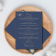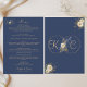 Elegant Modern Gold Monogram Navy Blue Wedding Menu