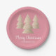 Elegant modern gold & pink Merry Christmas tree Paper Plate