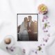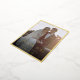 This is a modern wedding thank you postcard using a stylish font in gold foil along with a single minimalistic photo with a gold frame border, also using real gold foil. This design applies a filter to your photo for a muted modern feel. You can remove this filter by clicking on the blue button and selecting the filters to edit.