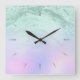 Elegant modern gradient mint green glitter purple square wall clock