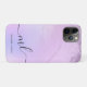 Gorgeous personalised iPhone case design with faux violet glitter marble, colourful pastel purple texture and elegant calligraphy font. Personalise the product with your initials and your name.