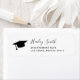 Simple black and white graduation return address label featuring a grad cap along with the name of the graduate in a handwritten script and two lines of text for your address in a sans serif font. A minimalist design with an elegant touch that is perfect for a girl graduate.