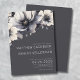 This modern wedding invitation design features a grey and white floral pattern with hints of black. The background is grey, showcasing black, grey, and cream-coloured watercolor anemone flowers. With modern lettering in black and grey fonts, it blends a unique dark, gothic vibe with a modern boho chic feel. Perfect for both contemporary city weddings and elegant rustic affairs, this design is ideal for winter weddings. Fully customisable, you can edit all the text and change the background colour to anything you like. Additionally, there are other similar styles available. Simple Elegant Modern Grey White Floral Wedding Invitation. Available as a printed invitation, or as a downloadable digital invite that you can send in e-mail or have printed locally!