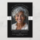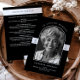 This elegant memorial program design features a clean and timeless black and white colour palette, creating a sophisticated and respectful tone ideal for a celebration of life or funeral service. The front showcases a modern, minimalist layout with refined serif typography and structured accents framing the arch-shaped custom photo and key details, emphasizing clarity and grace. The back continues the elegant simplicity with a structured order of service section, presented in classic black text against a crisp white background for easy readability. Perfect for memorials, funeral services, and celebration of life ceremonies, this design offers a professional, polished, and heartfelt tribute that honours loved ones with dignity and style while providing a seamless, customisable experience for families.
