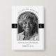 This elegant memorial pin features a sophisticated black and white design with a custom photo in a boho-style arch frame. Modern, minimalist typography highlights important details with a clean and timeless style, creating a heartfelt tribute that can be worn with pride and remembrance. The classic monochrome colour palette lends a polished and dignified appearance, making this pin perfect for a funeral, celebration of life, or memorial service. Thoughtfully designed to honour a loved one’s legacy, this customisable memorial pin offers a beautiful keepsake to cherish and remember.