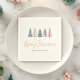 Christmas napkins with pastel trees and modern script typography in a minimalist holiday design.