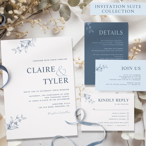 Elegant Modern Minimal Blue Wedding Invitation