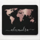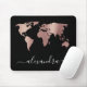 Elegant modern minimal rose gold black world map mouse pad
