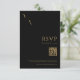 Modern Minimalist Black and Gold Wedding RSVP card. Features elegant monogram typography and minimal graphic design.
