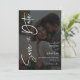 This trendy and luxurious Elegant Modern Minimalist Photo Save the Date card is the perfect choice for announcing your special day. This wedding save the date exudes a sense of sophistication and simplicity, perfect for couples seeking a minimal yet stylish design to set the tone for their upcoming celebration. The carefully curated layout allows your cherished photograph to take centre stage and symbolise the essence of your love story. The high end overlay beautifully complements the minimalistic calligraphy script typography, creating a timeless and refined aesthetic. Your guests will be captivated by the modern allure of this black and white card, making it a delightful keepsake that they'll treasure. Use the Design Tool to customise the photo placement, text font, colour, and size to your liking. For matching items, visit the Black Elegant Minimal Modern Dark Wedding invitations collection.