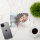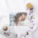 Send your engagement announcements in style with this elegant white photo faux vellum overlay wedding Save the Date, featuring modern hand lettered script typography paired with elegant gold foil serif fonts, as a white overlay over your favourite horizontal (landscape orientation) engagement photo. The back of the invitation features your announcement information. Copyright Anastasia Surridge, all rights reserved.