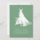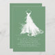 Welcome to the world of bridal elegance! This is a bridal shower invitation that perfectly encapsulates feminine grace and sophistication, with a focus on a beautifully illustrated white wedding gown. The charm of this design lies in its romantic and intimate appeal, which seems to invite each viewer to dive deep into its artistic depth. It is all about the bride, full of love and dreams, her deepest desires and aspirations which are intricately woven into the fabric of her dress's silhouette. This is not just an invitation; it’s a story, a glimpse into the soul of a bride on the brink of her new journey. The invitation's clean and simple typography is nothing short of an artful merger of subtlety and elegance. It complements the hand-drawn, pencil-sketched illustration that adorns the card, adding layers of whimsical charm, tender beauty, and a uniquely personal touch. The soft sage green background brings out the vibrancy of the design, making it a versatile gem. This gorgeous invitation is perfect for any bridal shower theme you might have in mind. Whether it’s the relaxed vibe of boho chic, the sleek sophistication of urban contemporary, the warm and inviting feel of rustic charm, the unblemished purity of timeless elegance, or the nostalgic aura of summer vintage romance - this invitation adapts and shines. Crafted to create a lasting and unforgettable impression, it is a prelude to the magical day ahead. It's designed for those who appreciate the finer things in life and want to make a statement that resonates with elegance and poise. So, for those planning a bridal shower, remember, it’s not just about the day; it’s also about the journey there. And what better way to embark on this journey than with an invitation that speaks volumes about the beauty that awaits?