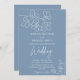 Elegant modern minimalist script calligraphy botanical flowers dusty blue wedding invitation template with QR RSVP and details at the back.