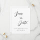 Black and white wedding save the date invitation in a minimalist theme with elegant, simple and modern text design. Handwritten calligraphy design on front and back.